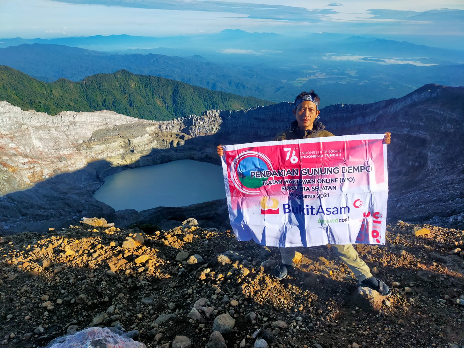 Sementara itu, Bendahara Umum IWO Sumsel, Ardhy Fitriansyah atau akrab disapa dengan panggilan Anang menjelaskan, jika misi mereka mendaki gunung Dempo tersebut sebenarnya tercetus secara spontan dan ingin memberikan hal berbeda dalam rangka memeriahkan HUT IWO ke 9 tahun ini sekaligus menyambut HUT RI ke 76 tahun. “Tentu itu hal yang beda, namun inilah bentuk kecintaan kami terhadap IWO, meski capek dan menghadapi banyak rintangan seperti melewati suhu dingin dan badai namun kami membuktikan bisa membawa langsung banner HUT IWO ke atas puncak merapi gunung Dempo,” terangnya.
