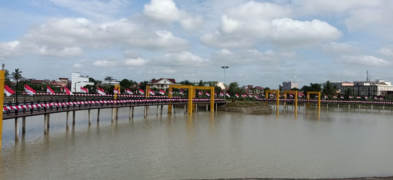 Ratusan Umbul-umbul dan Bendera Merah Putih terpasang di lokasi Taman Air Serasan Sekate tepatnya berada di depan Rumdin Bupati Muba.