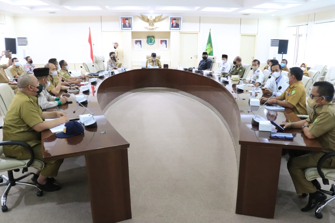 Rapat dipimpin Plt Bupati Beni Hernedi SIP melalui asisten Pemerintahan dan Kesejahteraan Rakyat Setda Muba H Yudi Herzandi SH MH diikuti oleh Forkopimda, OPD dan seluruh Camat berlangsung di Ruang Rapat Serasan Sekate, Senin (14/03/2022).