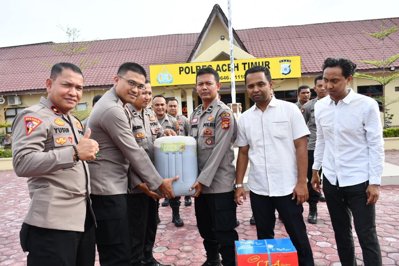 “Diharapkan dengan bantuan Eco Enzime Nusantara ini, resiko penyebaran PMK di wilayah hukum Polres Aceh Timur dapat diminimalisir.” Terang Wakapolres Kompol Ferdi Dakio, S.I.K.