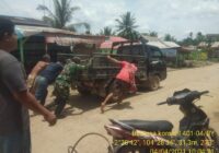 Warga Tantang Adu Kekuatan, Serka Rock Kameron dan Kopka Nuri Mendorong Mobil