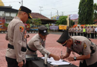 Muba,skr168.com – Kapolres Musi Banyuasin, AKBP Siswandi S.Ik, S.H, M.H, memimpin upacara serah >